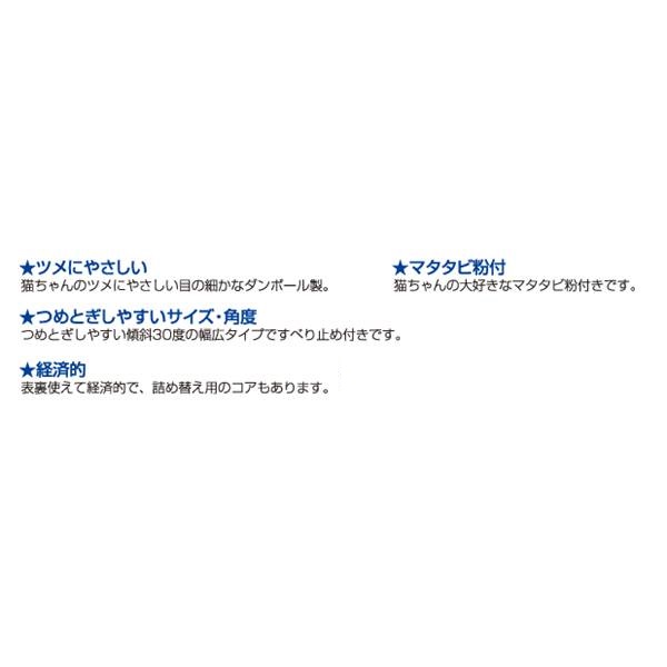 猫ちゃんのツメにやさしい目の細かなダンボール製のつめとぎスタンド。 傾斜30度をつけているので爪とぎしやすく、滑り止め付きでしっかりつめとぎできます。 猫ちゃんの大好きなマタタビの粉つきです。 裏表使えるので経済的! ●商品サイズ(約):幅31.5×奥行き44.5×高さ4.2cm ●材質:ダンボール