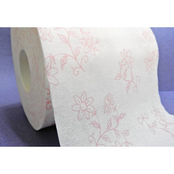 ピンクの花柄がプリントされた高級トイレットペーパー(パルプ100%)