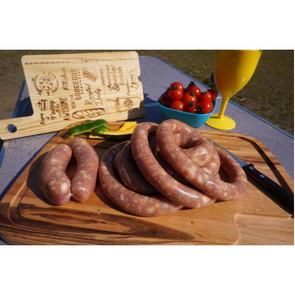 羊腸を使用したぐるぐるタイプの豚肉生ソーセージ。