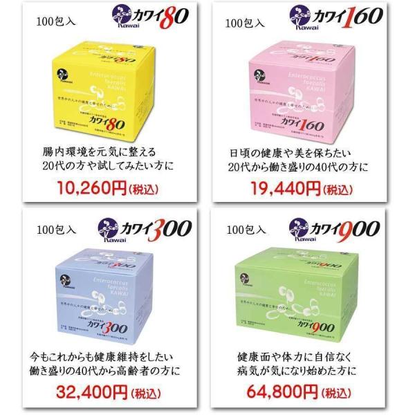 ・カワイシリーズはカワイ株の含有量別に4種類あり、若い方から高齢者まで年齢や体調に合った商品をお選びいただけます。