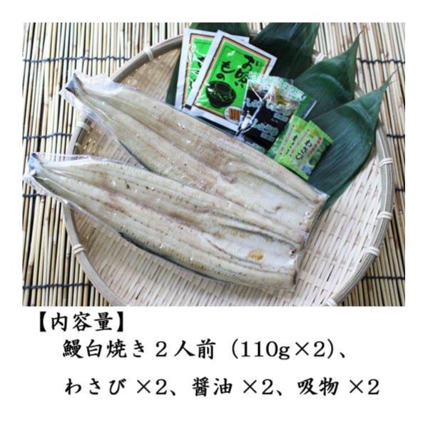 鰻白焼き2人前(110g×2)、わさび×2、醤油×2、吸物×2