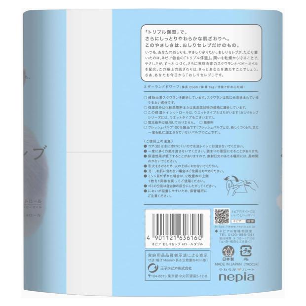 【ケース販売】ネピア おしりセレブ トイレット ロール ダブル 保湿タイプ 2枚重ね 40m4ロール ×20パック