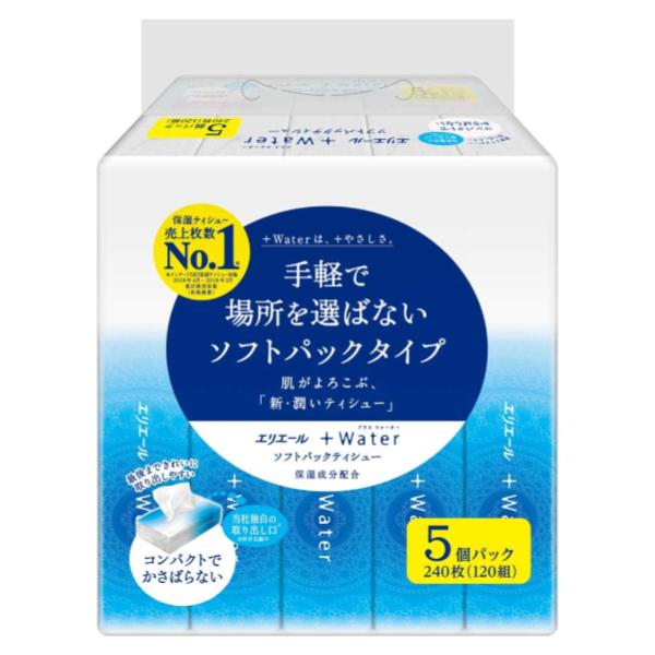 【ケース販売】エリエール +Waterソフトパック120組x5箱x18パック
